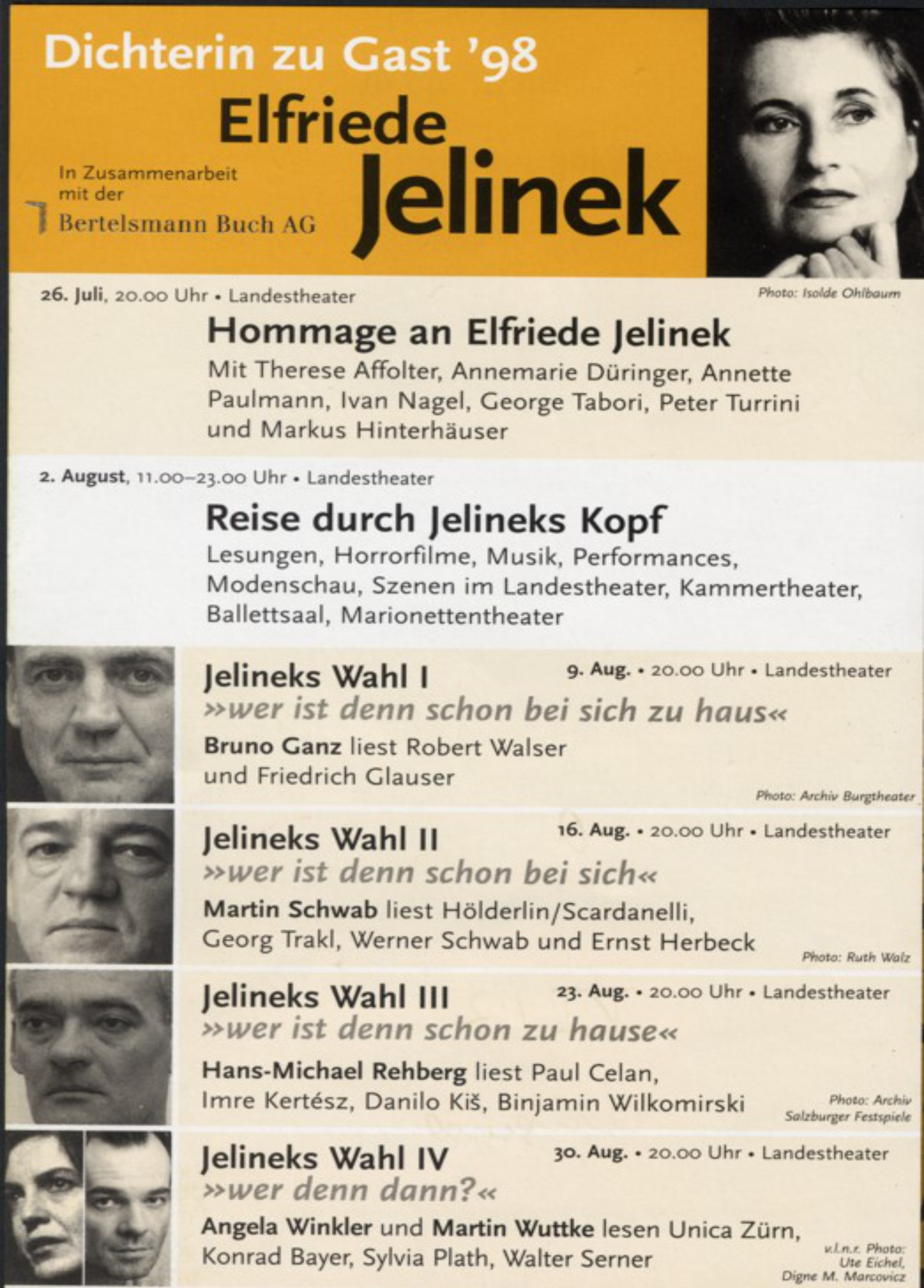 Dieses Portal des Elfriede Jelinek-Forschungszentrums und des Interuniversitären Forschungsnetzwerks Elfriede Jelinek, das in Zusammenarbeit mit zahlreichen Kooperationspartner*innen entsteht, eröffnet neue Perspektiven auf die Geschichte und Gegenwart der Salzburger Festspiele – Perspektiven, die Fragen nach Gender, Repräsentation und Macht ins Zentrum rücken.